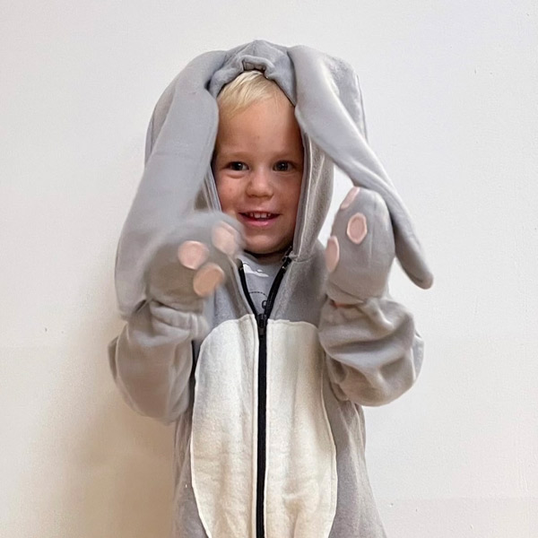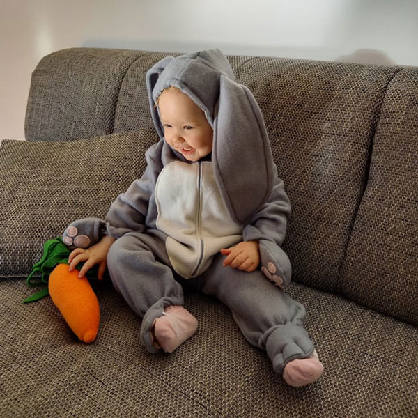 Pustni kostumi Martinine mašince niso le prikupni, ampak tudi udobni in premišljeno oblikovani, da se malčki v njih lahko igrajo, plešejo in lovijo krofe!